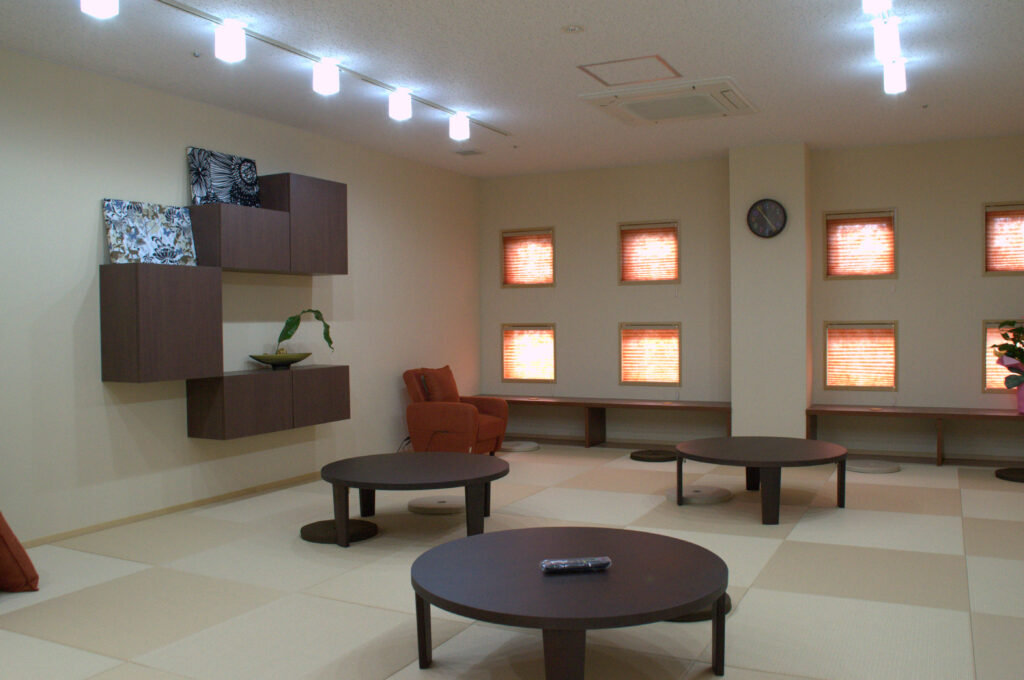 質の高い介護は、職員一人ひとりの心身の充実から生まれます。湊荘では、働く仲間が心からリラックスできるよう、デザインにもこだわった専用ラウンジを設けています。